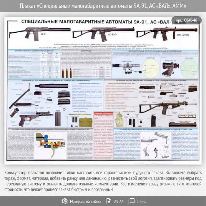 Плакат «Специальные малогабаритные автоматы 9А-91, АС «ВАЛ», АММ» (ОБЖ-46, 1 лист) в Улан-Удэ купить