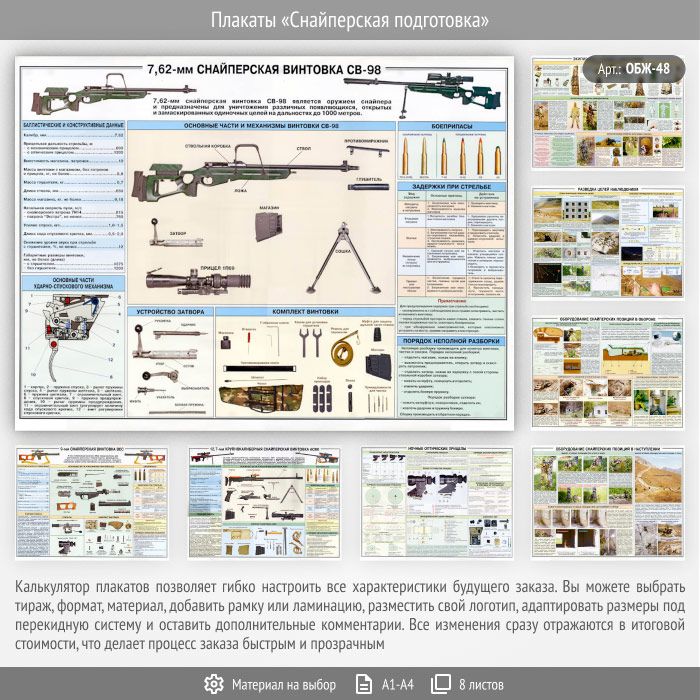 Плакаты «Снайперская подготовка» (ОБЖ-48, 8 листа) в Улан-Удэ купить