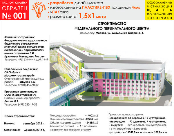 Паспорт стройки, образец № 1 (пластик 4 мм, 1500х1000 cм) в Улан-Удэ купить
