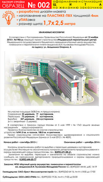 Паспорт стройки, образец № 2 (пластик 4 мм, 1700х2500 см) в Улан-Удэ купить