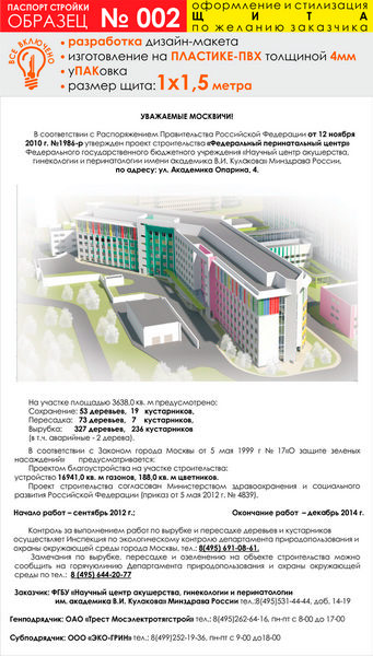 Паспорт стройки, образец № 2 (пластик 4 мм, 1000х1500 cм) в Улан-Удэ купить