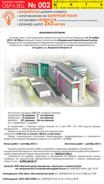 Паспорт стройки, образец № 2 (баннерная ткань, 2000х3000 cм) в Улан-Удэ купить