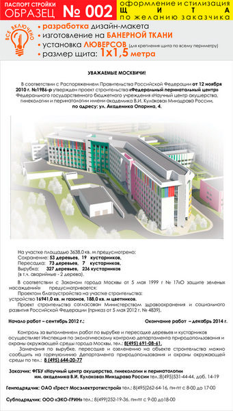 Паспорт стройки, образец № 2 (баннерная ткань, 1000х1500 cм) в Улан-Удэ купить