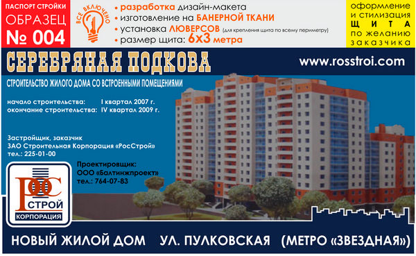Паспорт стройки, образец № 4 (баннерная ткань, 6000х3000 cм) в Улан-Удэ купить