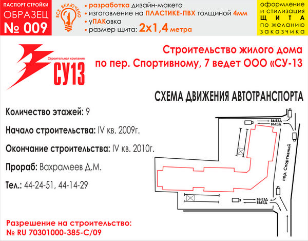 Паспорт стройки, образец № 9 (пластик 4 мм, 2000х1400 cм) в Улан-Удэ купить