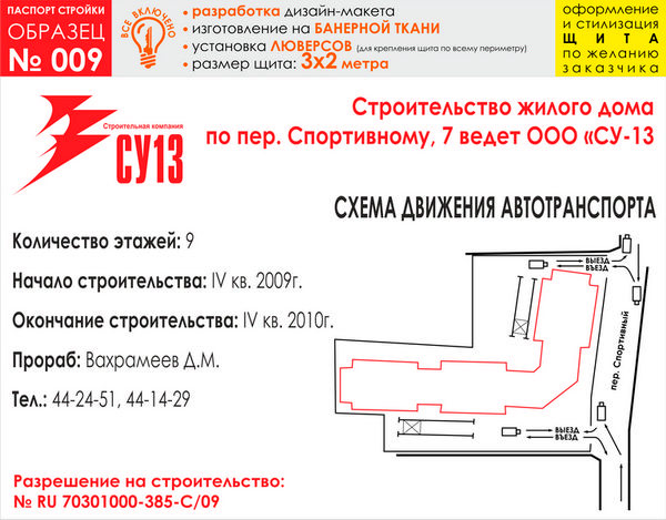 Паспорт стройки, образец № 9 (баннерная ткань, 3000х2000 cм) в Улан-Удэ купить