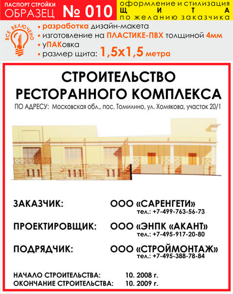 Паспорт стройки, образец № 10 (пластик 4 мм, 1500х1500 cм) в Улан-Удэ купить