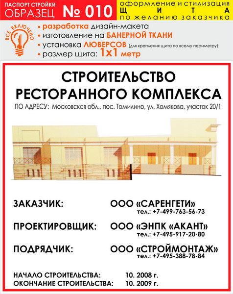 Паспорт стройки, образец № 10 (баннерная ткань, 1000х1000 cм) в Улан-Удэ купить
