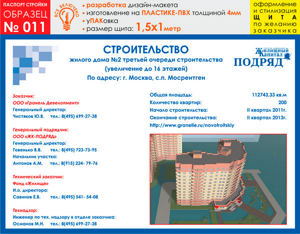Паспорт стройки, образец № 11 (пластик 4 мм, 1500х1000 cм) в Улан-Удэ купить