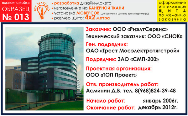 Паспорт стройки, образец № 13 (баннерная ткань, 4000х2000 cм) в Улан-Удэ купить