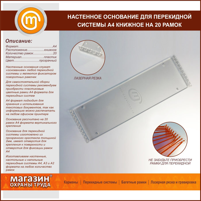 Настенное основание для перекидной системы А4 книжное на 20 рамок (оргстекло) в Улан-Удэ купить