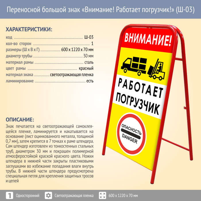 Переносной большой знак «Внимание! Работает погрузчик!» (Ш-03, односторонний, светоотражающая пленка) в Улан-Удэ купить
