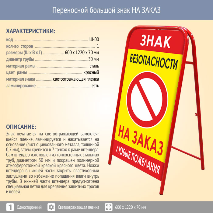Переносной большой знак НА ЗАКАЗ (односторонний, светоотражающая пленка) в Улан-Удэ купить