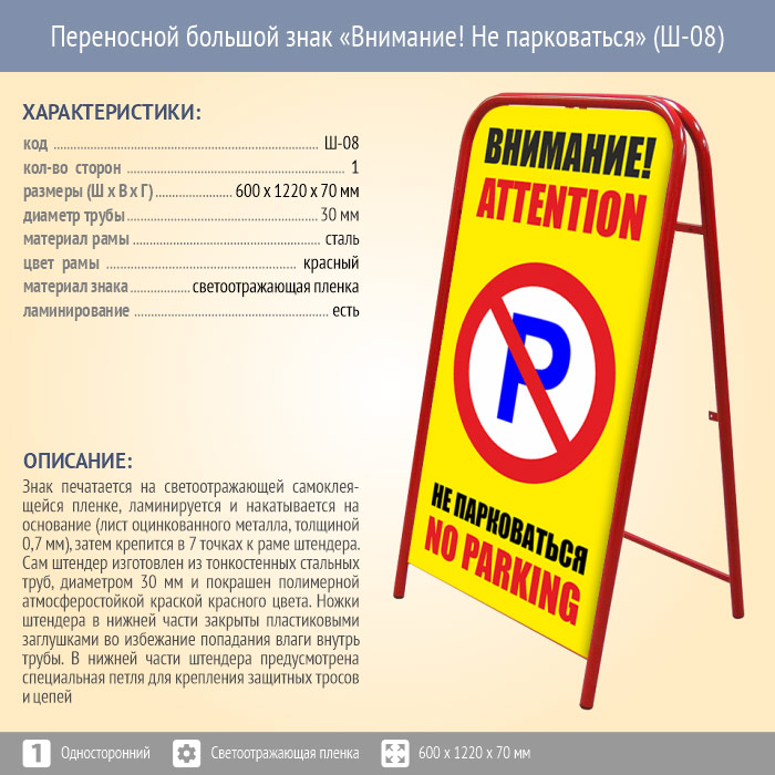 Переносной большой знак «Внимание! Не парковаться» (Ш-08, односторонний, светоотражающая пленка) в Улан-Удэ купить