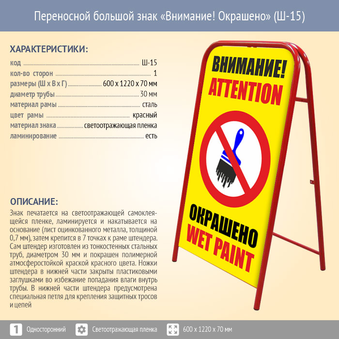 Переносной большой знак «Внимание! Окрашено» (Ш-15, односторонний, светоотражающая пленка) в Улан-Удэ купить