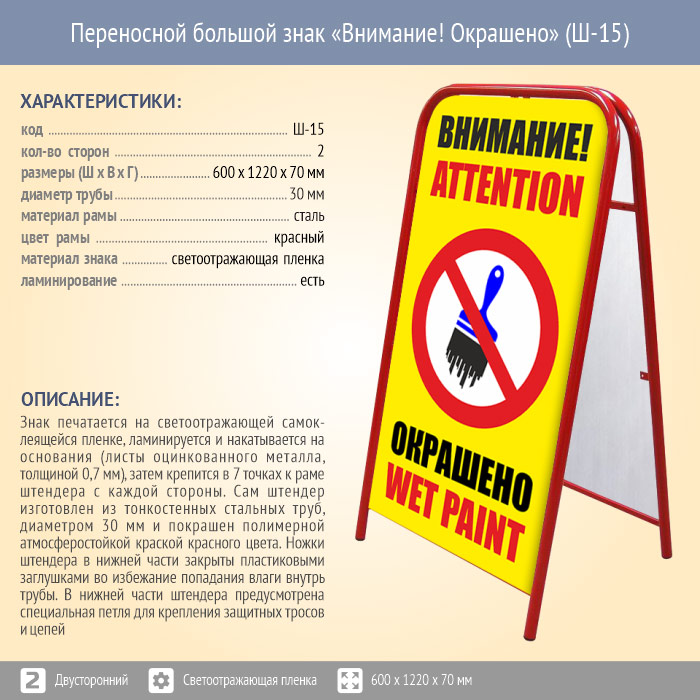 Переносной большой знак «Внимание! Окрашено» (Ш-15, двусторонний, светоотражающая пленка) в Улан-Удэ купить