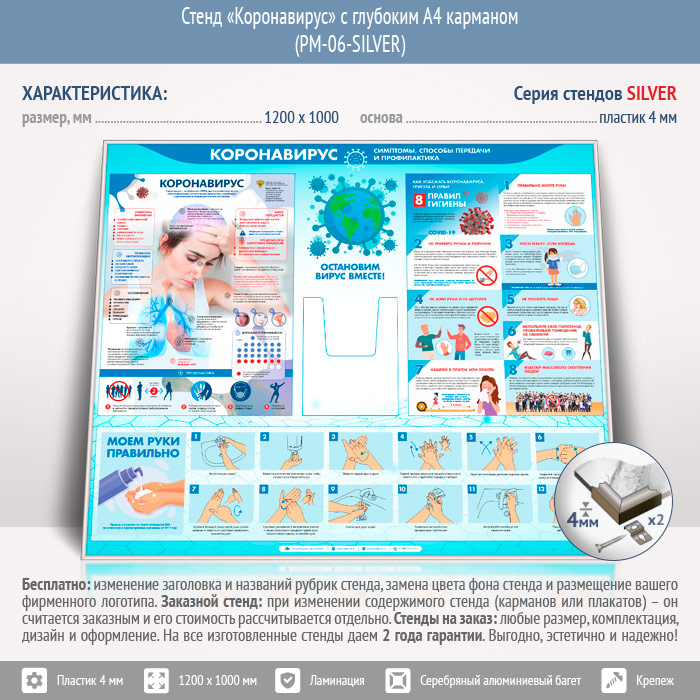 Стенд «Коронавирус» с глубоким А4 карманом (PM-06-SILVER) в Улан-Удэ купить