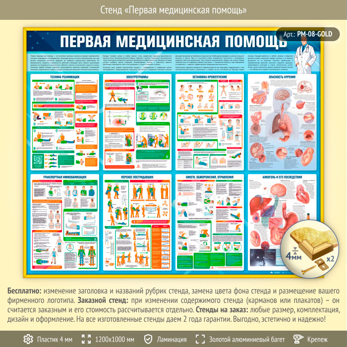 Стенд «Первая медицинская помощь» (PM-08-GOLD) в Улан-Удэ купить