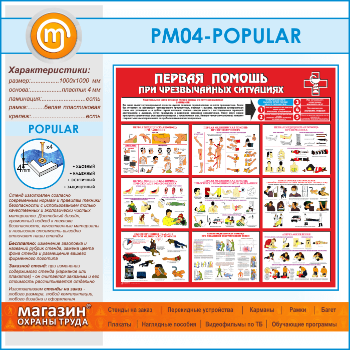 Стенд «Первая помощь при чрезвычайных ситуациях» (PM-04-POPULAR) в Улан-Удэ купить