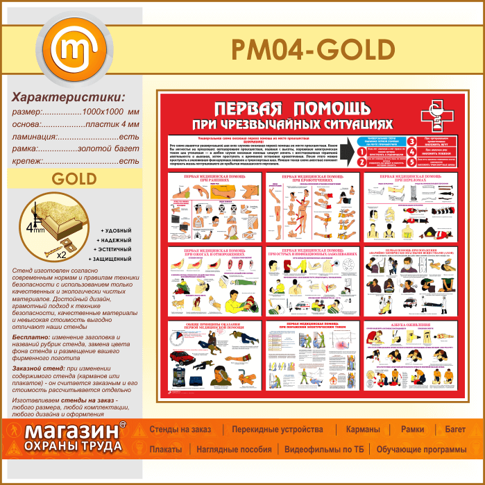 Стенд «Первая помощь при чрезвычайных ситуациях» (PM-04-GOLD) в Улан-Удэ купить