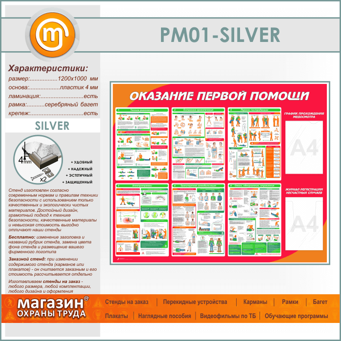 Стенд «Оказание первой помощи» с плоским и объемным карманами (PM-01-SILVER) в Улан-Удэ купить