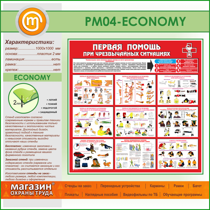 Стенд «Первая помощь при чрезвычайных ситуациях» (PM-04-ECONOMY) в Улан-Удэ купить