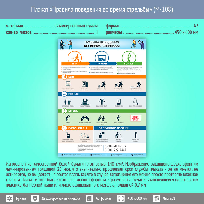 Плакат «Правила поведения во время стрельбы» (М-108, ламинированная бумага, А2, 1 лист) в Улан-Удэ купить