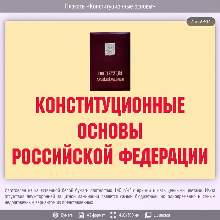 Плакаты «Конституционные основы» (АР-14, бумага, А3, 11 листов) в Улан-Удэ купить