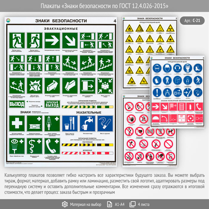 Плакаты «Знаки безопасности по ГОСТ 12.4.026-2015» (С-21, 4 листа)Плакаты «Знаки безопасности по ГОСТ 12.4.026-2015» (С-21, 4 листа)Плакаты «Знаки безопасности по ГОСТ 12.4.026-2015» (С-21, 4 листа)Плакаты «Знаки безопасности по ГОСТ 12.4.026-2015» (С-21, 4 листа)