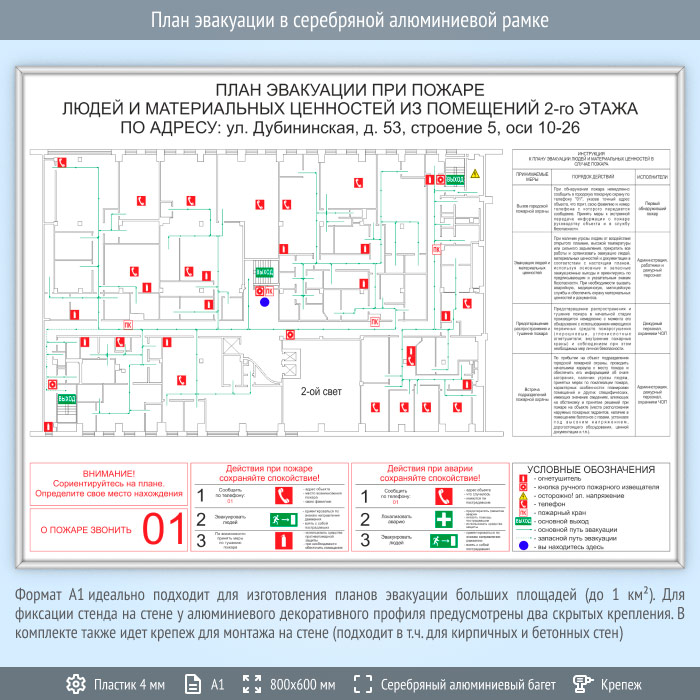 План эвакуации в серебряной алюминиевой рамке (А1 формат) в Улан-Удэ купить