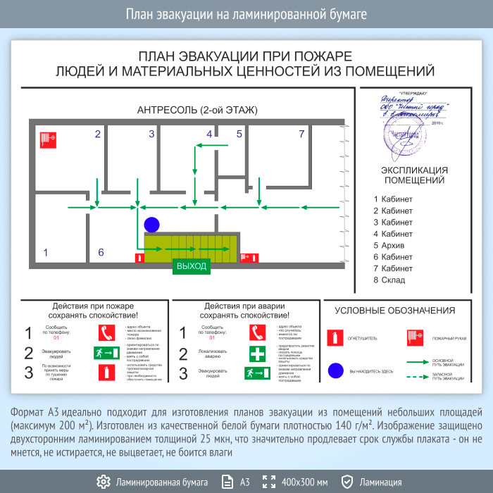 План эвакуации на ламинированной бумаге (А3 формат) в Улан-Удэ купить