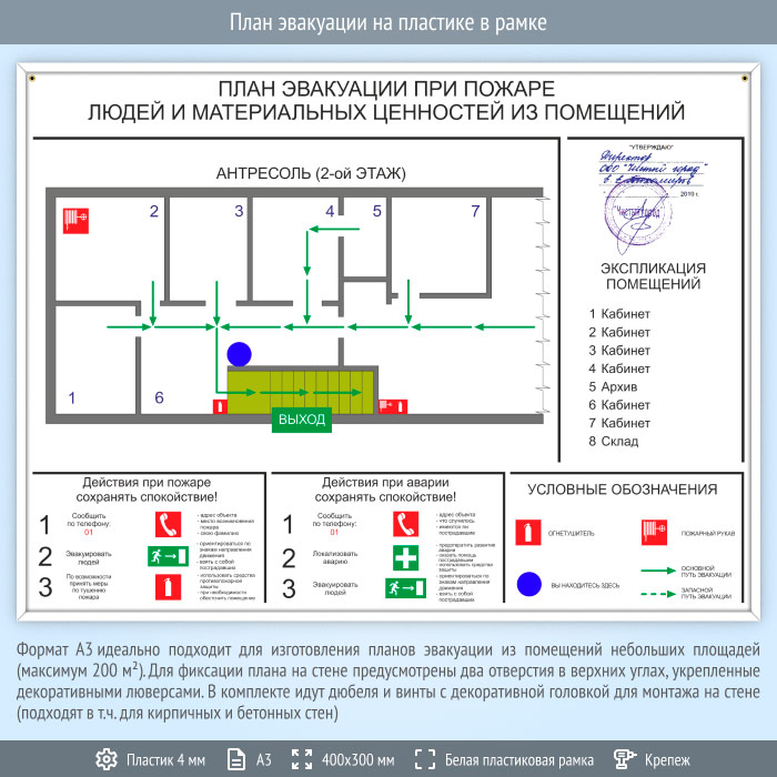 План эвакуации на пластике в рамке (А3 формат) в Улан-Удэ купить