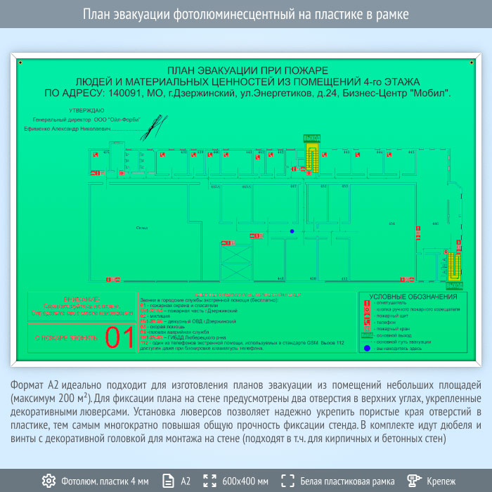 План эвакуации фотолюминесцентный на пластике в рамке (А2 формат) в Улан-Удэ купить