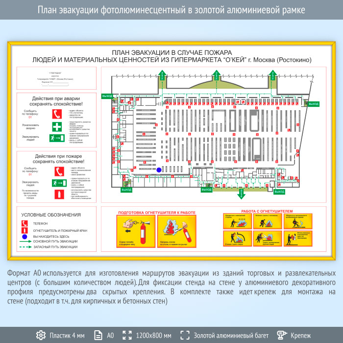 План эвакуации в золотой алюминиевой рамке (А0 формат) в Улан-Удэ купить