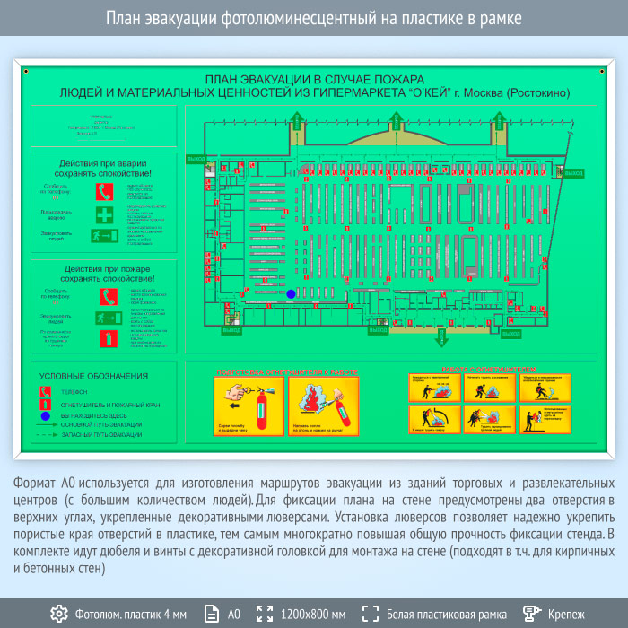 План эвакуации фотолюминесцентный на пластике в рамке (А0 формат) в Улан-Удэ купить
