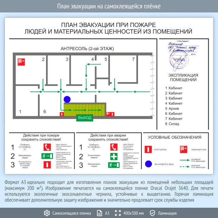 План эвакуации на самоклеящейся плёнке (А3 формат) в Улан-Удэ купить