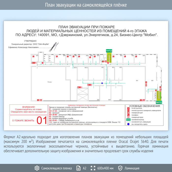 План эвакуации на самоклеящейся плёнке (А2 формат) в Улан-Удэ купить