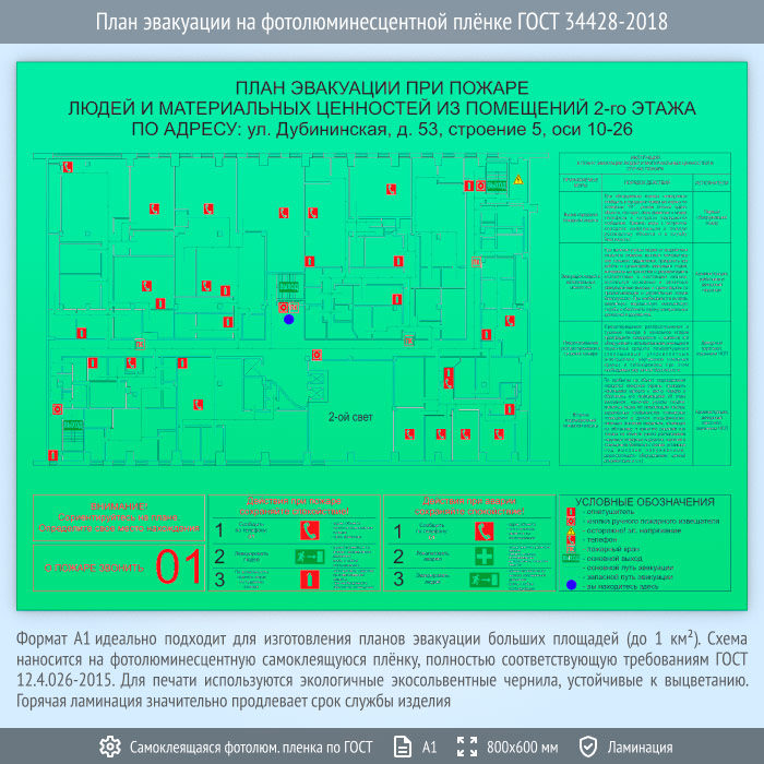 План эвакуации на фотолюминесцентной плёнке ГОСТ 34428-2018 (А1 формат) в Улан-Удэ купить