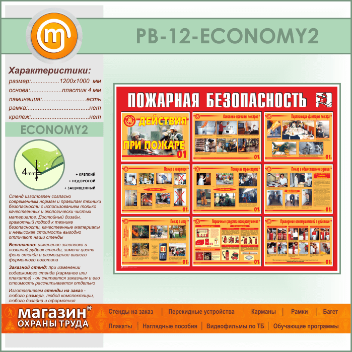 Стенд «Пожарная безопасность. Действия при пожаре» (PB-12-ECONOMY2) в Улан-Удэ купить