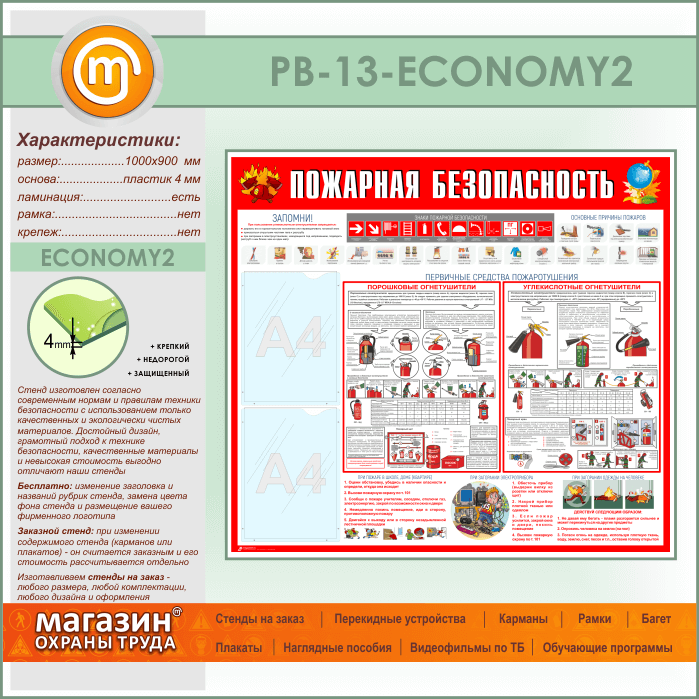Стенд «Пожарная безопасность» с 2 карманами (PB-13-ECONOMY2) в Улан-Удэ купить