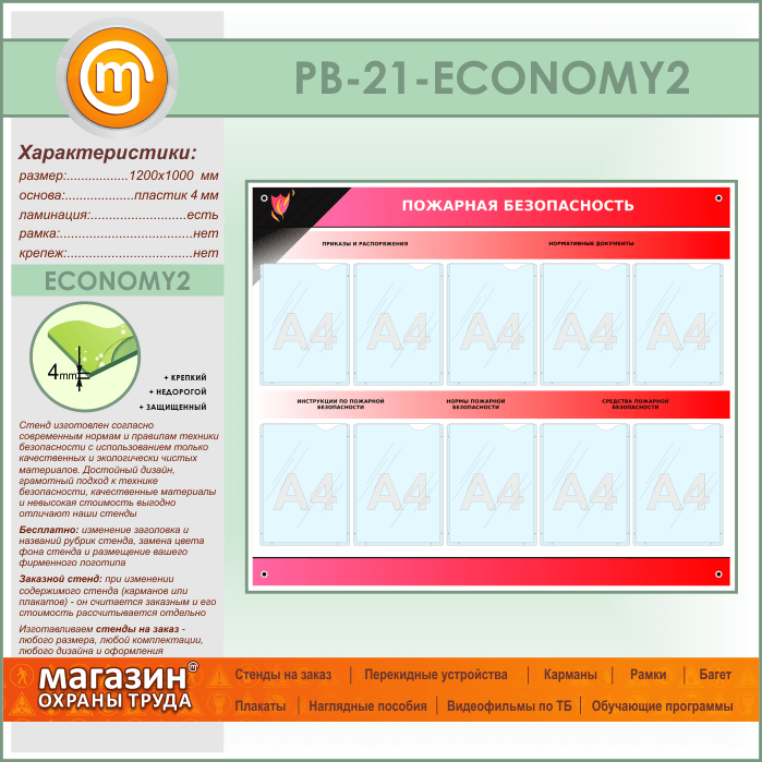 Стенд «Пожарная безопасность» с 10 карманами (PB-21-ECONOMY2) в Улан-Удэ купить