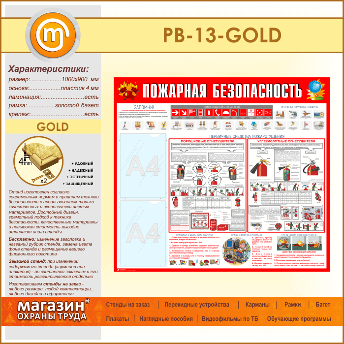 Стенд «Пожарная безопасность» с 2 карманами (PB-13-GOLD) в Улан-Удэ купить