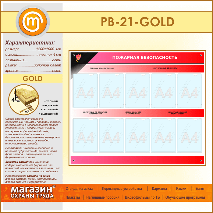 Стенд «Пожарная безопасность» с 10 карманами (PB-21-GOLD) в Улан-Удэ купить