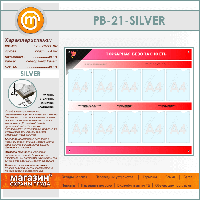 Стенд «Пожарная безопасность» с 10 карманами (PB-21-SILVER) в Улан-Удэ купить