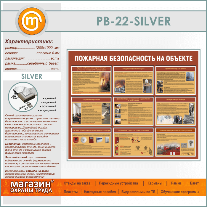 Стенд «Пожарная безопасность на объекте» (PB-22-SILVER) в Улан-Удэ купить
