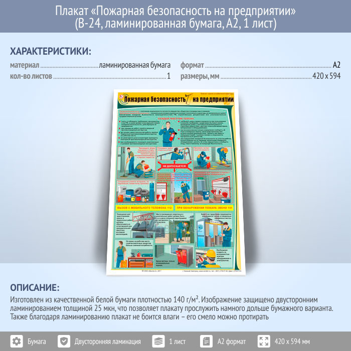 Плакат «Пожарная безопасность на предприятии» (В-24, ламинированная бумага, А2, 1 лист) в Улан-Удэ купить