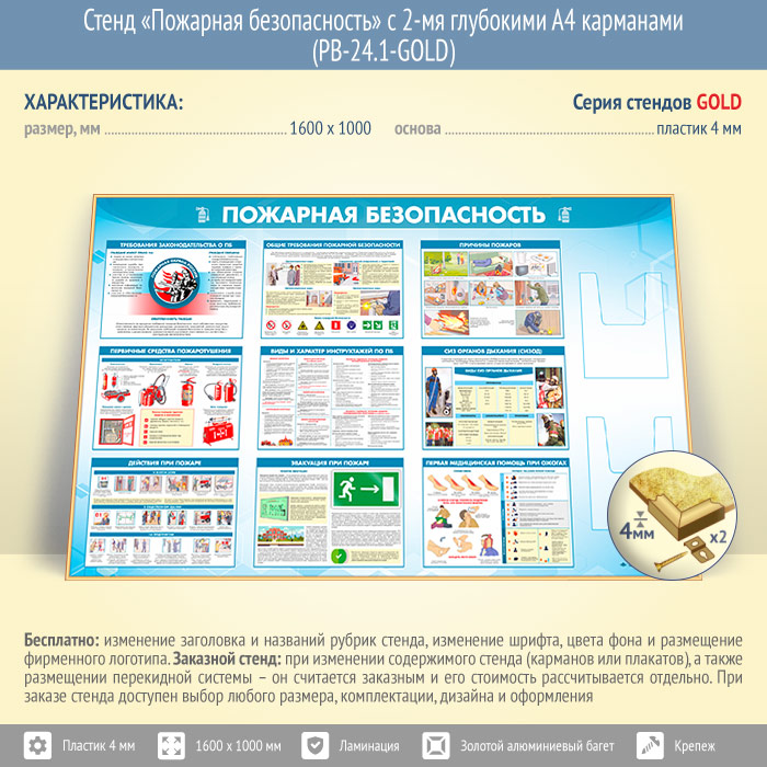 Стенд «Пожарная безопасность» с 2-мя глубокими А4 карманами (PB-24.1-GOLD) в Улан-Удэ купить