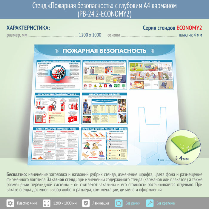 Стенд «Пожарная безопасность» с глубоким А4 карманом (PB-24.2-ECONOMY2) в Улан-Удэ купить