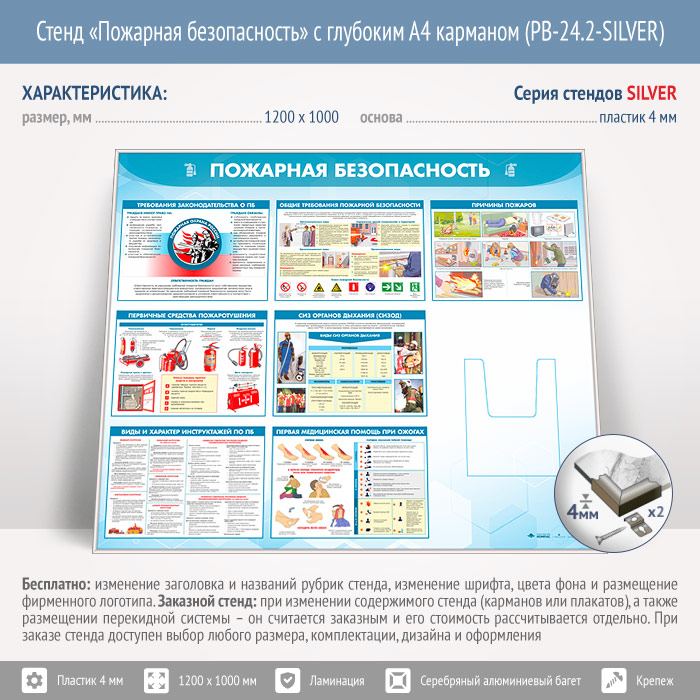 Стенд «Пожарная безопасность» с глубоким А4 карманом (PB-24.2-SILVER) в Улан-Удэ купить