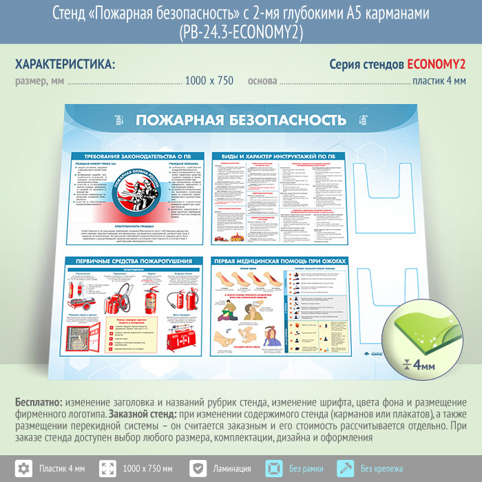 Стенд «Пожарная безопасность» с 2-мя глубокими А5 карманами (PB-24.3-ECONOMY2) в Улан-Удэ купить